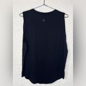 Sleek black tank top. Sleeveless design. Perfect for workouts or casual wear.