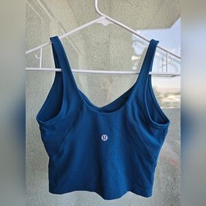 Stylish blue crop top. Perfect for workouts or casual wear. Comfortable fit.
