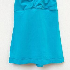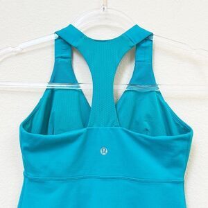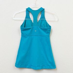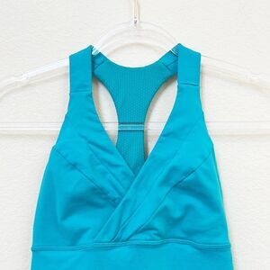 Stylish blue tank top. Features a racerback design. Perfect for workouts.