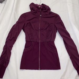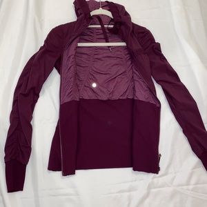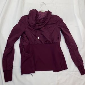 Stylish lululemon jacket. Features a hood and front zipper. Perfect for layering.