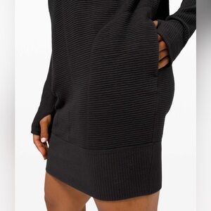 lululemon athletica Call for Cozy Long Sleeve Dress, black color, size 4, with pockets. Chic black dress with long sleeves. Perfect blend of comfort and style.