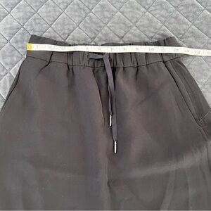 Chic charcoal pencil skirt. Features elastic waistband with drawstring. Perfect for versatile styling.