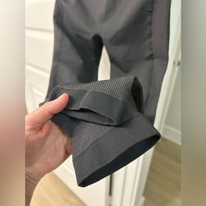Lululemon, sz: 4 charcoal textured leggings, thick, snug, internal small pocket on back, detailed sides/legs, worn once, don’t like the super tight stiff fit and length (sits few inches above ankle) . In excellent condition. It’s still squat proof, just thicker/tighter feel, will definitely hold you together in all the right places. Lying flat, waist:12”, length:34”