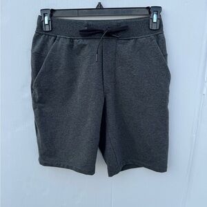 Lululemon men’s shorts in size Small. Dark gray color with an adjustable drawstring waistband and side pockets. Soft, lightweight, and comfortable fabric, perfect for lounging, workouts, or casual wear. Excellent pre-owned condition.