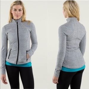 Stylish gray jacket. Full zip front. High collar design. Comfortable fit.