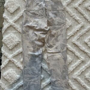 Stylish gray patterned leggings. Comfortable and flexible fit. Perfect for workouts or casual wear.