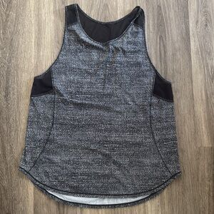 Stylish tank top by lululemon athletica. Features a gray textured pattern with black accents. Perfect for workouts or casual wear.