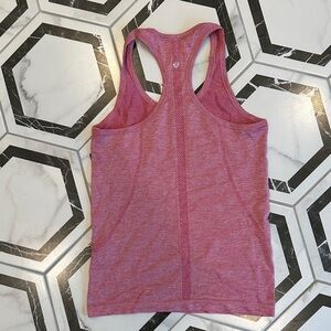 Lululemon Swiftly Tech racerback tank in a heather raspberry shade with subtle shimmer✨Soft stretch fabric for ease of movement. Breathable and suited for workouts or layering.