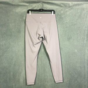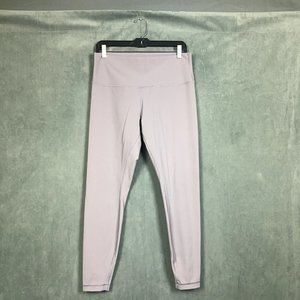 Soft lavender leggings. High-waisted design. Perfect for yoga or casual wear.