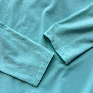 Stylish athleisure, comfy, mint green, mini dress with long sleeves. Soft fabric for comfort. Ideal for everyday wear. It runs small and a bit form fitting. I have not worn it once. It’s super cute though, great color.