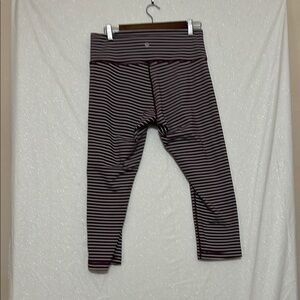 lululemon athletica Maroon and White Striped Crop WunderUnder Leggings. Size 12