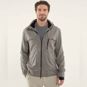 Lightweight jacket with a sleek design. Features a hood and zippered chest pocket. Ideal for everyday wear.