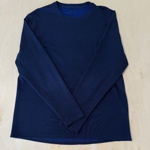 Stylish navy crewneck sweater. Soft and comfortable fabric. Perfect for casual wear.