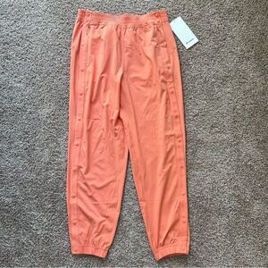 Stylish orange track pants. Comfortable fit. Perfect for workouts.