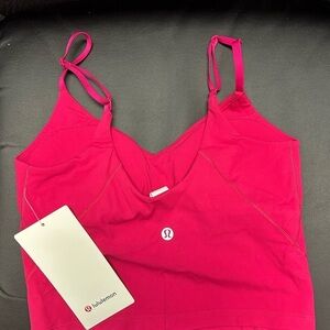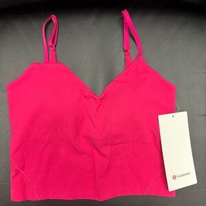 Experience comfort and style with the lululemon athletica Align Cropped Cami Tank Top. This vibrant pink top offers light support and a flattering fit, perfect for any activity.