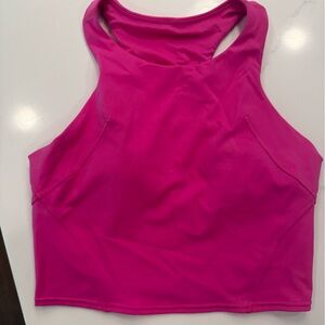 Vibrant pink tank top. Racerback design. Ideal for workouts.