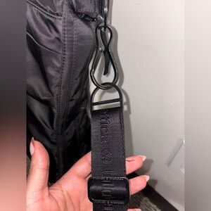 Chic quilted design. Durable black fabric. Ideal for daily essentials.