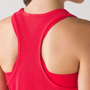 Vibrant red tank top. Breathable fabric. Ideal for workouts.