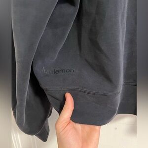 Lululemon dark grey Softstreme sweater. “Perfectly oversized”, features slight crop and crewneck. Only worn a couple times, in good used condition no major flaws. Size 8. This is the perfect high quality item for your athleisure look, or working out! ALL MY ITEMS ARE BOGO FREE :)