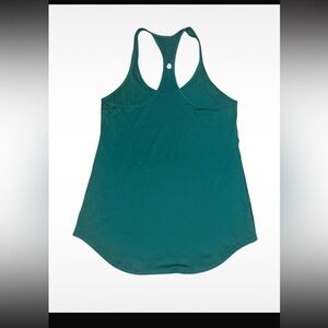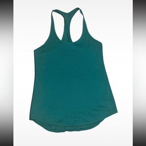 Sleek teal tank with racerback design. Ideal for workouts or casual wear.