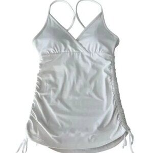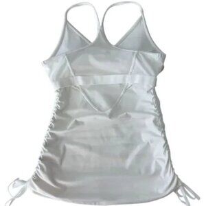 Elegant white tank with V-neck design. Ideal for yoga or casual outings. Soft and comfortable fabric.