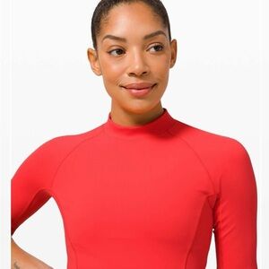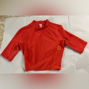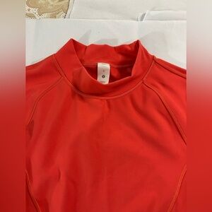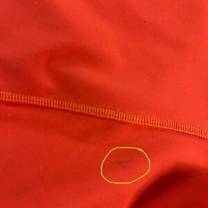 Elevate your workout with the lululemon athletica Women's Cropped Top in vibrant pink/red/orange. Listed color is pink punch, but it is more pink/red/orange. Designed for comfort and style, this top is perfect for any active lifestyle. Minor flaw. Please refer to pictures with yellow marking depicting minor flaw.