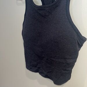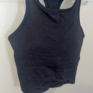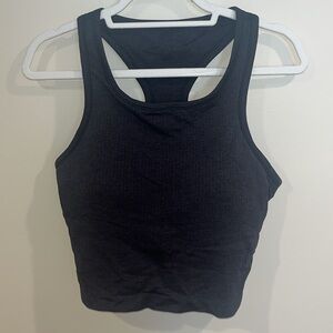 Sleek black tank top. Racerback design. Perfect for workouts or going out. Ribbed material, built in bra. Cropped. Selling because it is too big on me. Ebb to street style.