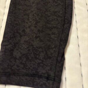 Very gently work high waisted leggings with pockets. Charcoal grey camo-style print.