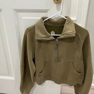 lululemon oversized scuba half zip funnel neck bronze green xs/s