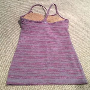 Lululemon Size 4 Purple striped power Y tank. Cups included. Great workout tank for any type of exercise !