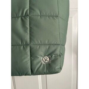 From the Lululemon and peloton collaboration, so this does have a peloton logo in addition to the Lululemon logo. Super pretty grey green color. Medium size of this bag.