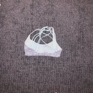 lululemon sports bra, thin cross back, teal and gray/ size 4