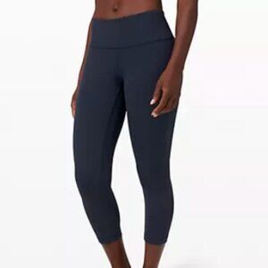 lululemon wunder under legging true navy 4 luon mid rise crop 21" yoga train run