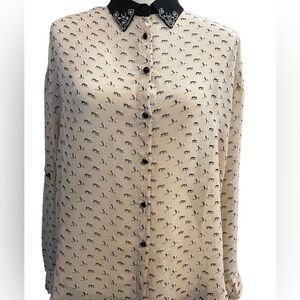 LUMIERE Large Sheer Button Down Deer Print and Bling Collar Shirt. So cute!