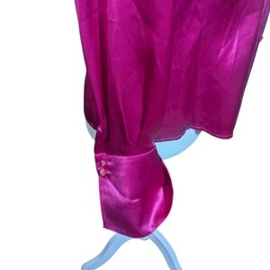 luxury Silk Blouse Elegant Barbiecore Classic Pink Button Up Sz 12