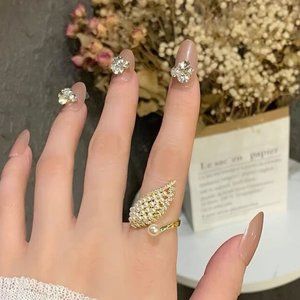 luxury pearl zircon stylish and unusual jewelry opening adjustable ring