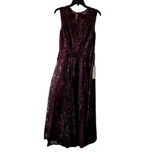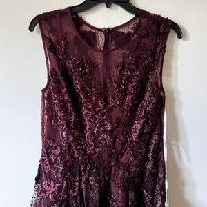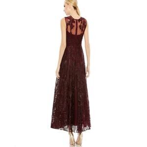 mac duggal 20421 Embroidered High Neck Sleeveless Dress Burgundy size 6 C8