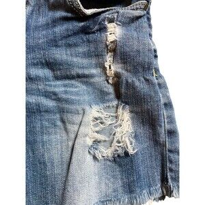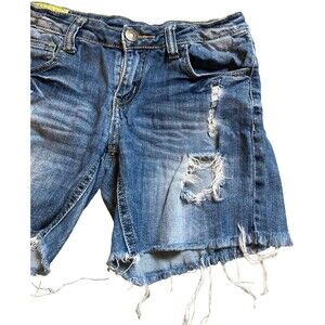 Machine Nouvelle distressed blue jean denim shorts.