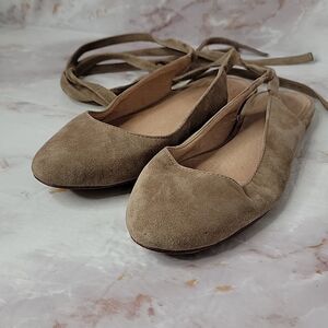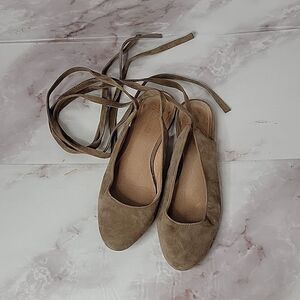 madewell Tan Suede April Ankle Wrap Flat Sz 8