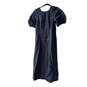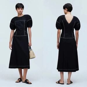 madewell black puff-sleeve drop-waist midi dress women's nq890 size 8