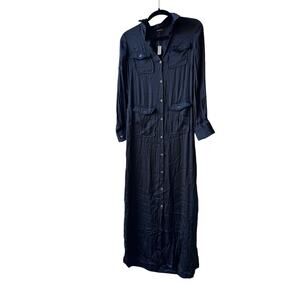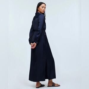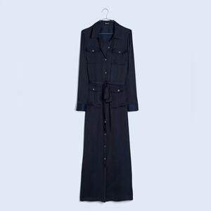 madewell button-front utility shirtdress satin deep indigo nr775 women xxsmall
