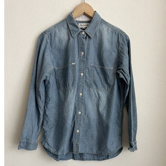 madewell chambray Top shirt Button Up Long Sleeve Blue Size Small