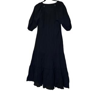 madewell tie-waist tiered midi dress in windowpane navy ns139 women size 8