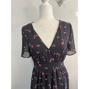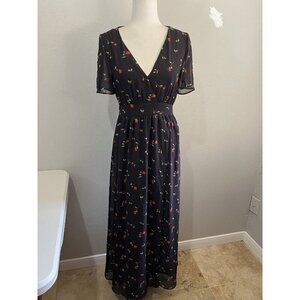 madewell tulip sleeve maxi dress black floral size 2 Sweet Blossom Faux Wrap