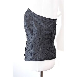 magaschoni Corset Strapless Silk Beaded Bustier Top Black 6