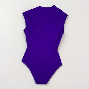maje Low-Cut Bodysuit Small 1 Violet Technical Fabric Stretch Luxury