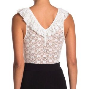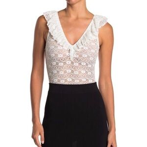 maje lace white sexy ruffle V-Neck bodysuit one piece size 3 or medium