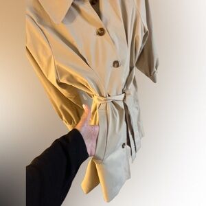 trench coat, beige jacket, XS trench, small coat, belted jacket, balloon sleeve, cottagecore, quiet luxury, preppy, minimalist, capsule wardrobe, spring fashion, fall layering, polished outerwear, street style, classic, timeless, minimalist, tailored, neutral, Parisian, streetwear, preppy, capsule wardrobe, fall fashion, winter layering, city chic, business casual, polished, London style, outerwear essential