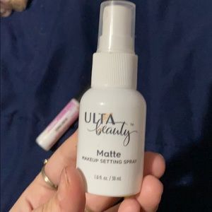 ulta beauty setting spray, yes to you acne spot treatment, lash glue for fake lashes, unused bottle of liquid eye shadow