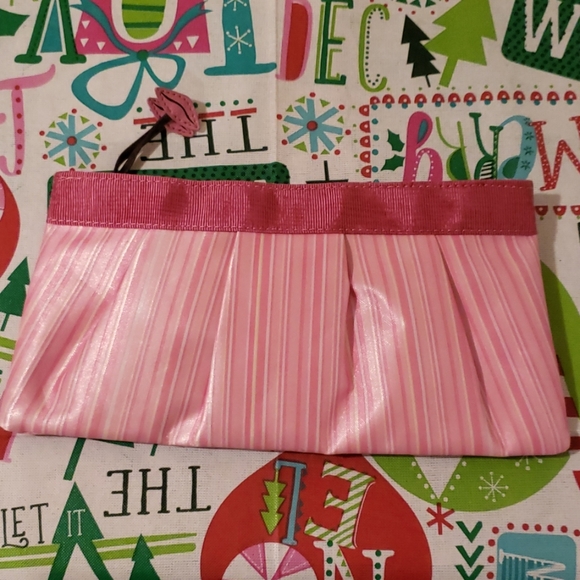 Pink cosmetic bag, never used, mint condition. Has 2 tiny pairs of lips as a cute accent.